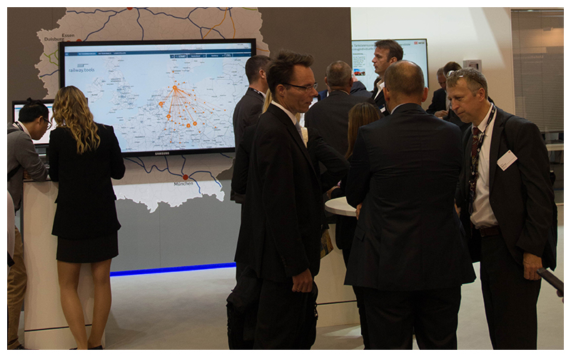 Messestand auf der Weltleitmesse für Schienenfahrzeugtechnik, 3D-Animation