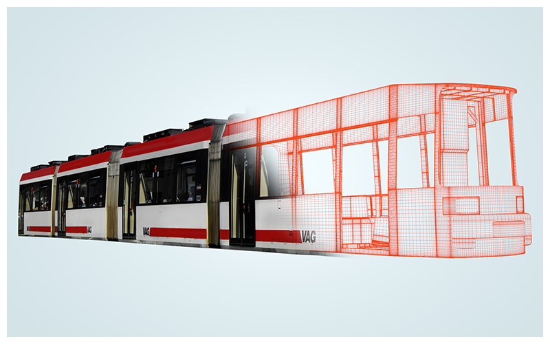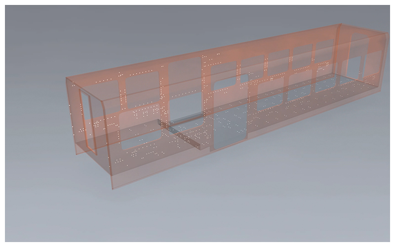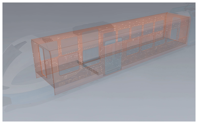 Darstellung eines Laser-Vermessungsprozesses für den Waggon-Innenausbau und die Zusammenarbeit des Dienstleisters mit seinen Kunden